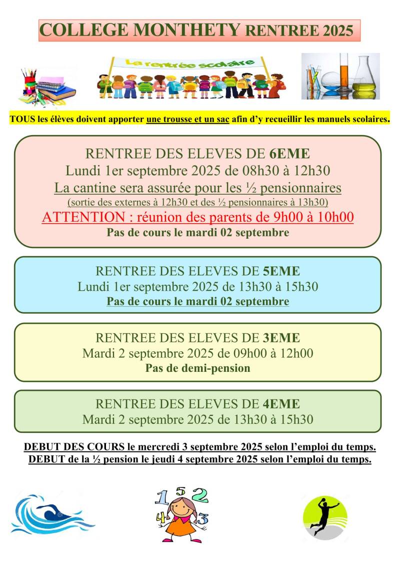 Date de rentrée 2025-2026 et fournitures